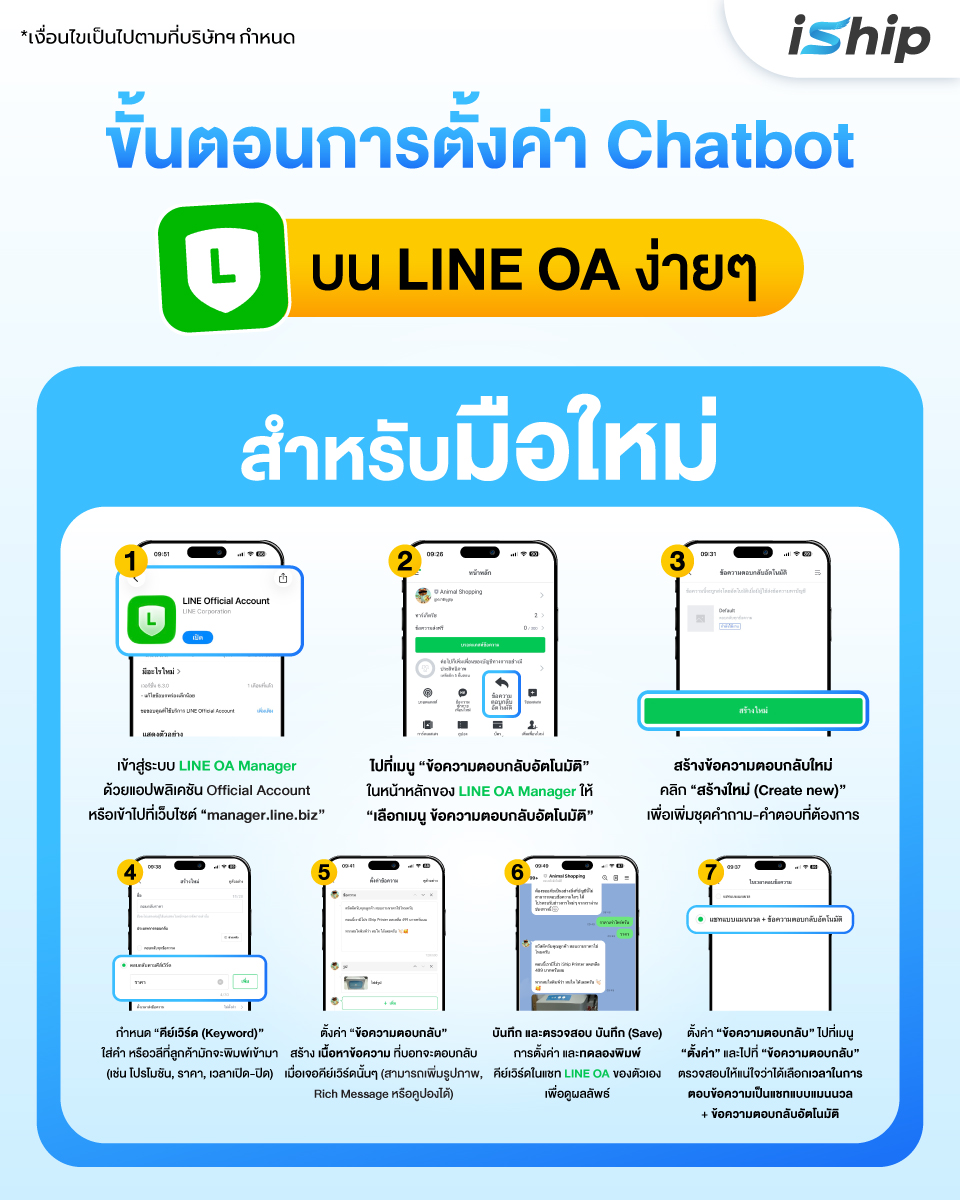 - เช่น สำหรับคำถามเรื่องค่าส่ง กำหนดคีย์เวิร์ดเป็น “ค่าส่ง”, “ส่งของ”, “กี่บาท” หรือ “EMS”