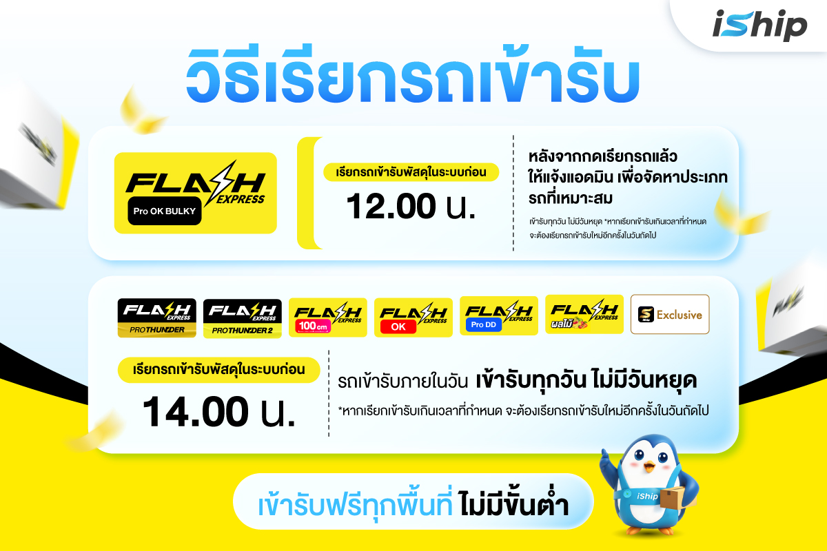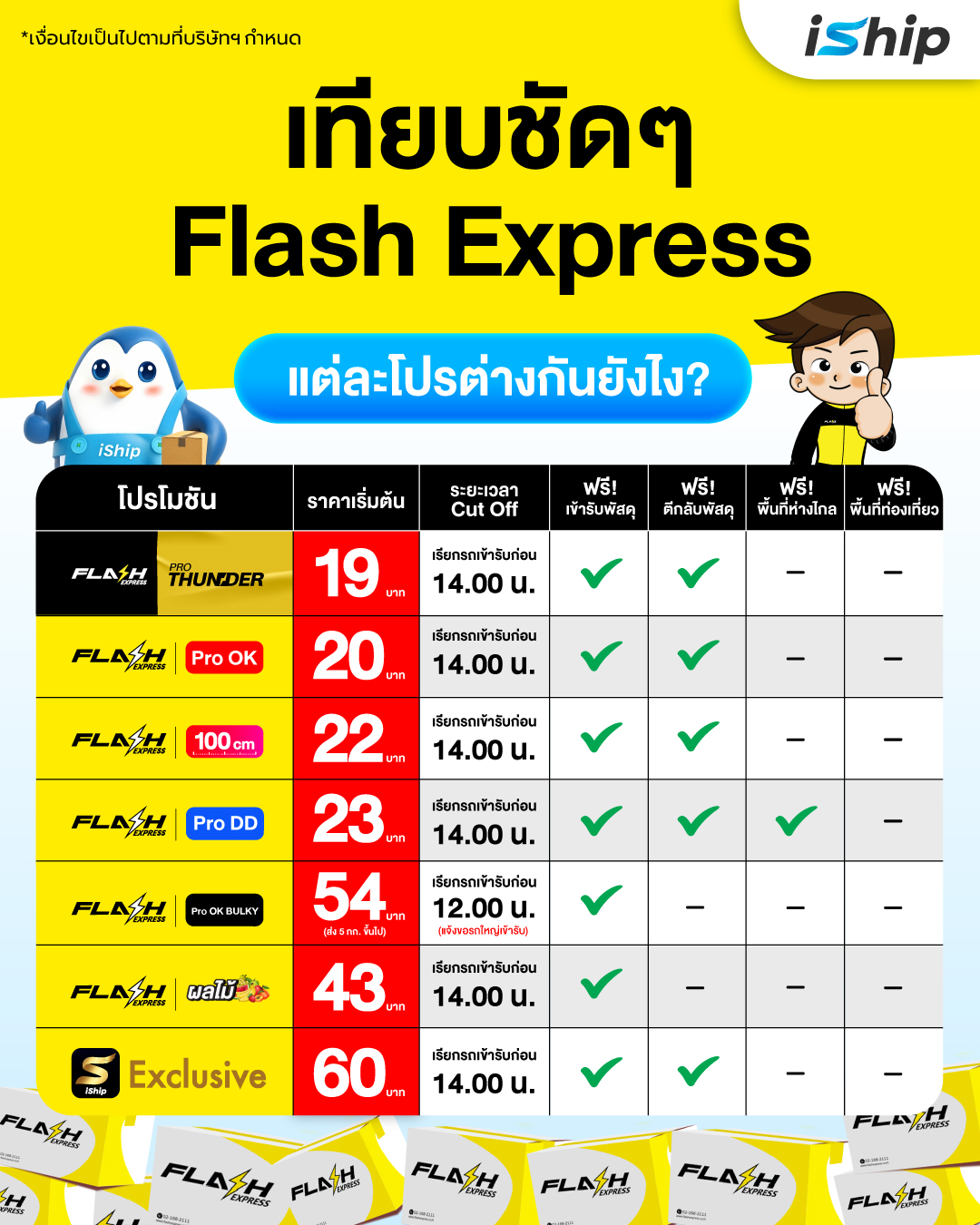 • ในส่วนของเงื่อนไขการเข้ารับพัสดุของแต่ละโปรโมชันของ Flash Express สามารถดูเพิ่มเติมได้โดยการ คลิกที่นี่