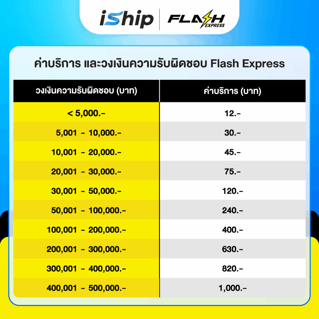 อัตราค่าบริการขนส่ง Flash Express บนระบบ iShip
