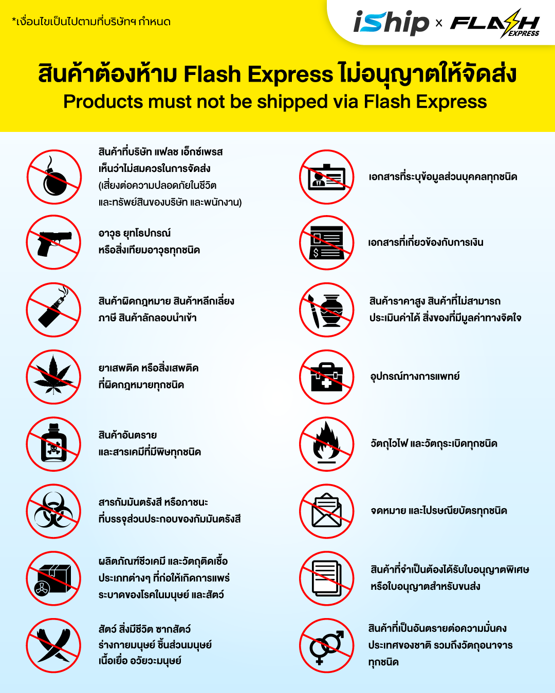• Flash จะรับผิดชอบเมื่อเกิดความเสียหายต่อกล่องพัสดุในระหว่างการขนส่ง