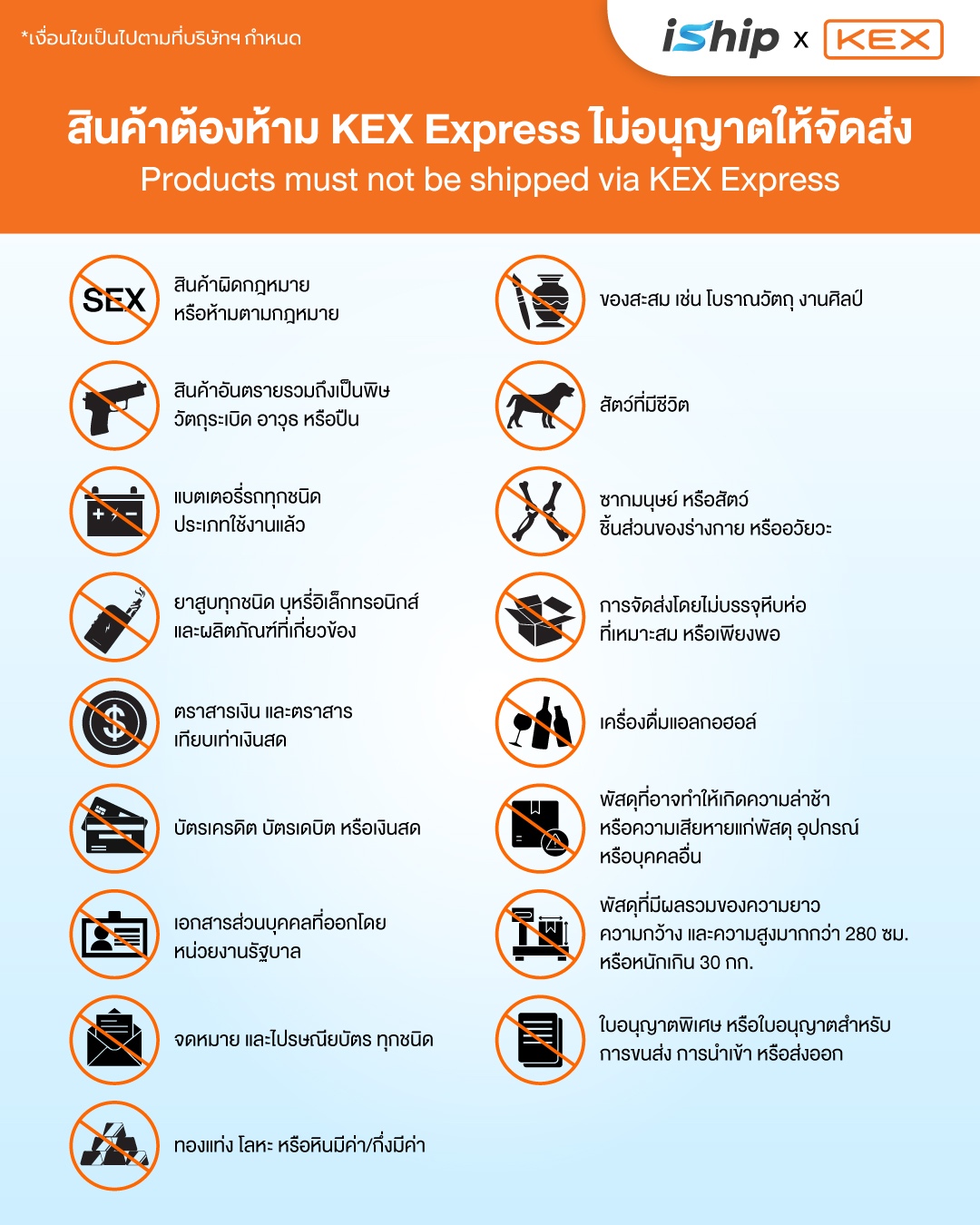 • สินค้าต้องห้าม หรือสินค้าที่รับส่งแต่ไม่รับเคลมทุกกรณี